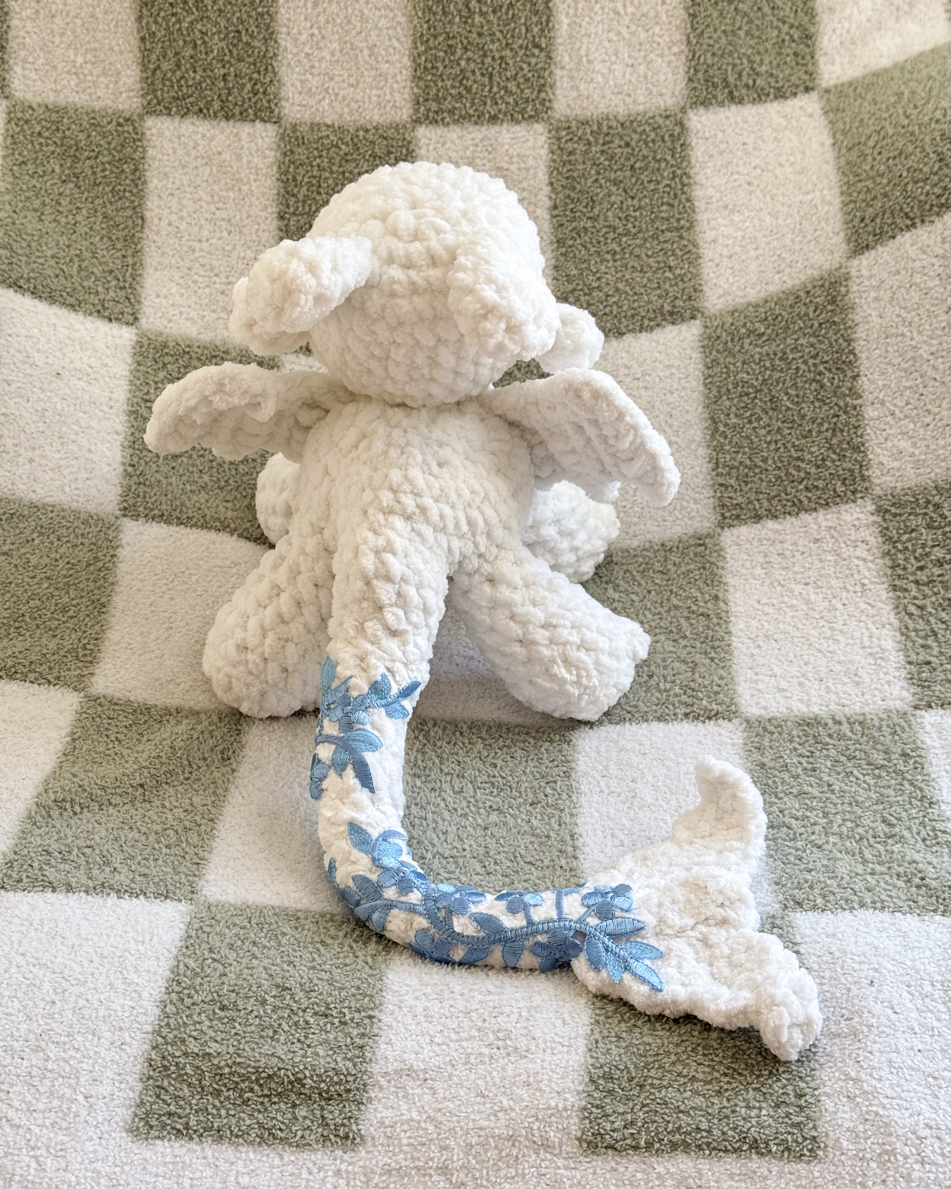 This plushie includes safety eyes and small appliques, which may pose a choking hazard. Not suitable for children under 4 or anyone at risk. Use with supervision.